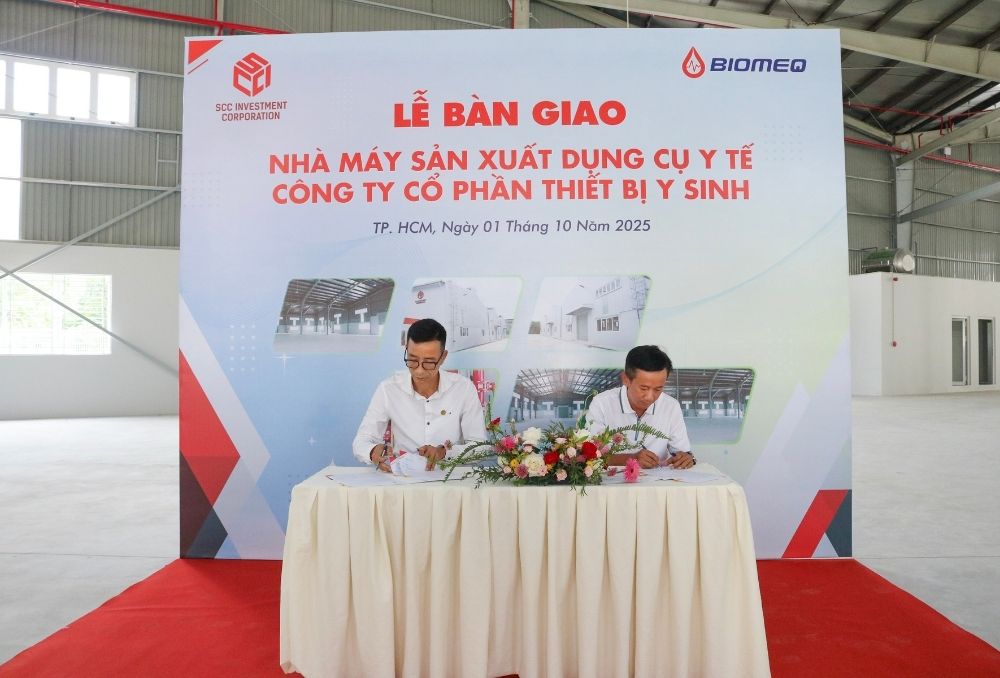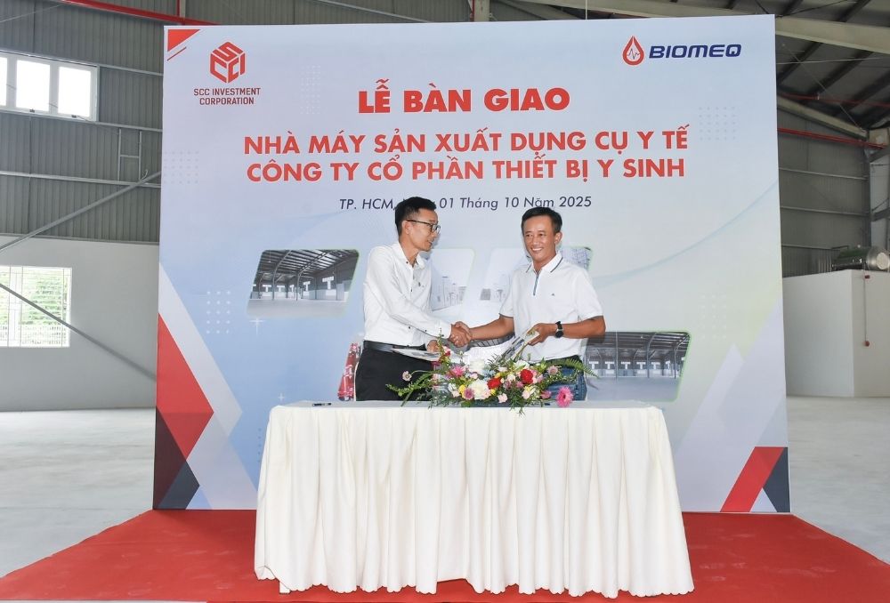 Sáng ngày 01/10/2025, Công ty Cổ phần Đầu tư SCC (SCCI) đã tổ chức thành công Lễ Bàn giao Nhà máy sản xuất dụng cụ y tế Công ty Cổ phần Thiết bị y sinh (BIOMEQ) tại nhà xưởng Lô 9E, KCN Tân Tạo, Phường Tân Tạo, TP.HCM.